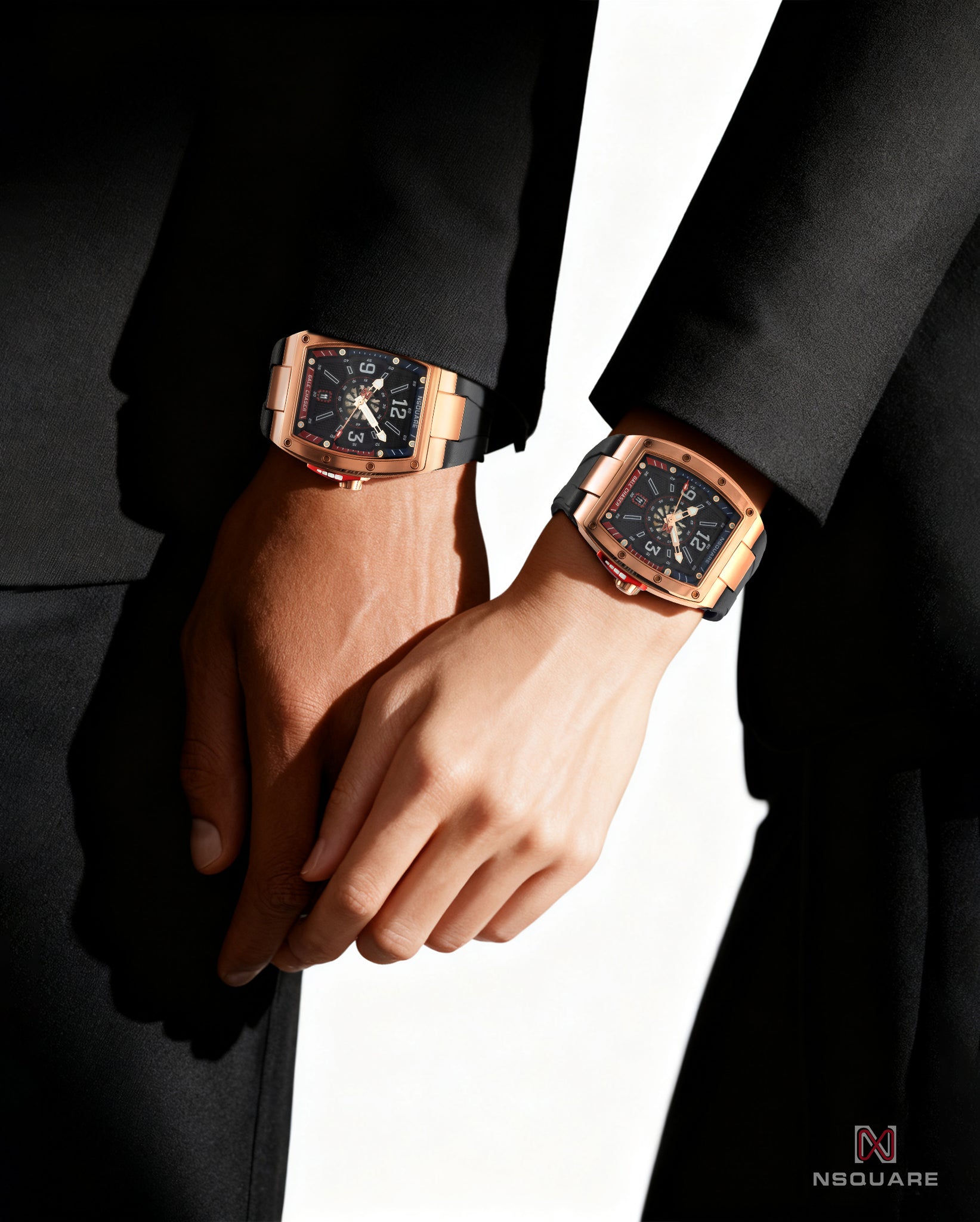 Width: 44 mm x Length: 53.7 mm .Rose gold color PVD coated stainless steel 316L case.