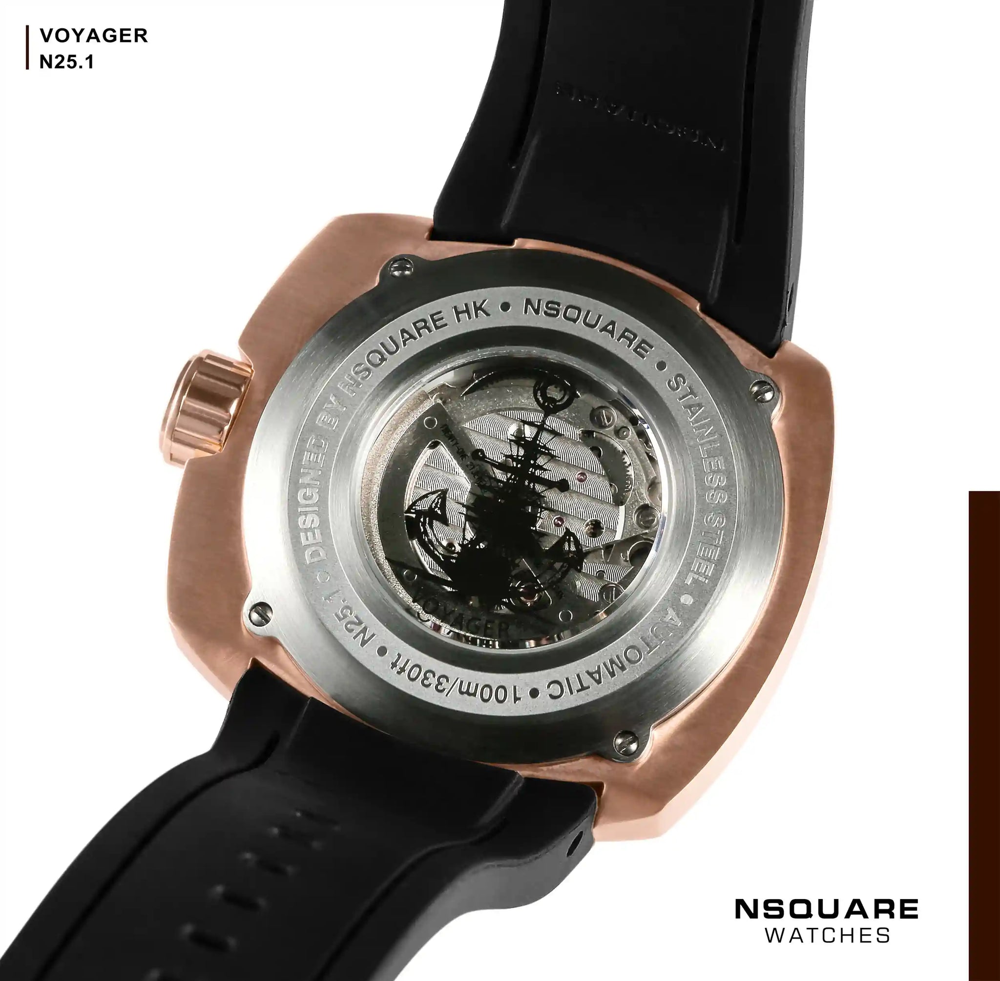NSQUARE VOYAGER Automatic Watch -51mm  N25.1 RG/Brown|NSQUARE 旅遊者 自動錶-51毫米  N25.1 玫瑰金色/棕啡色