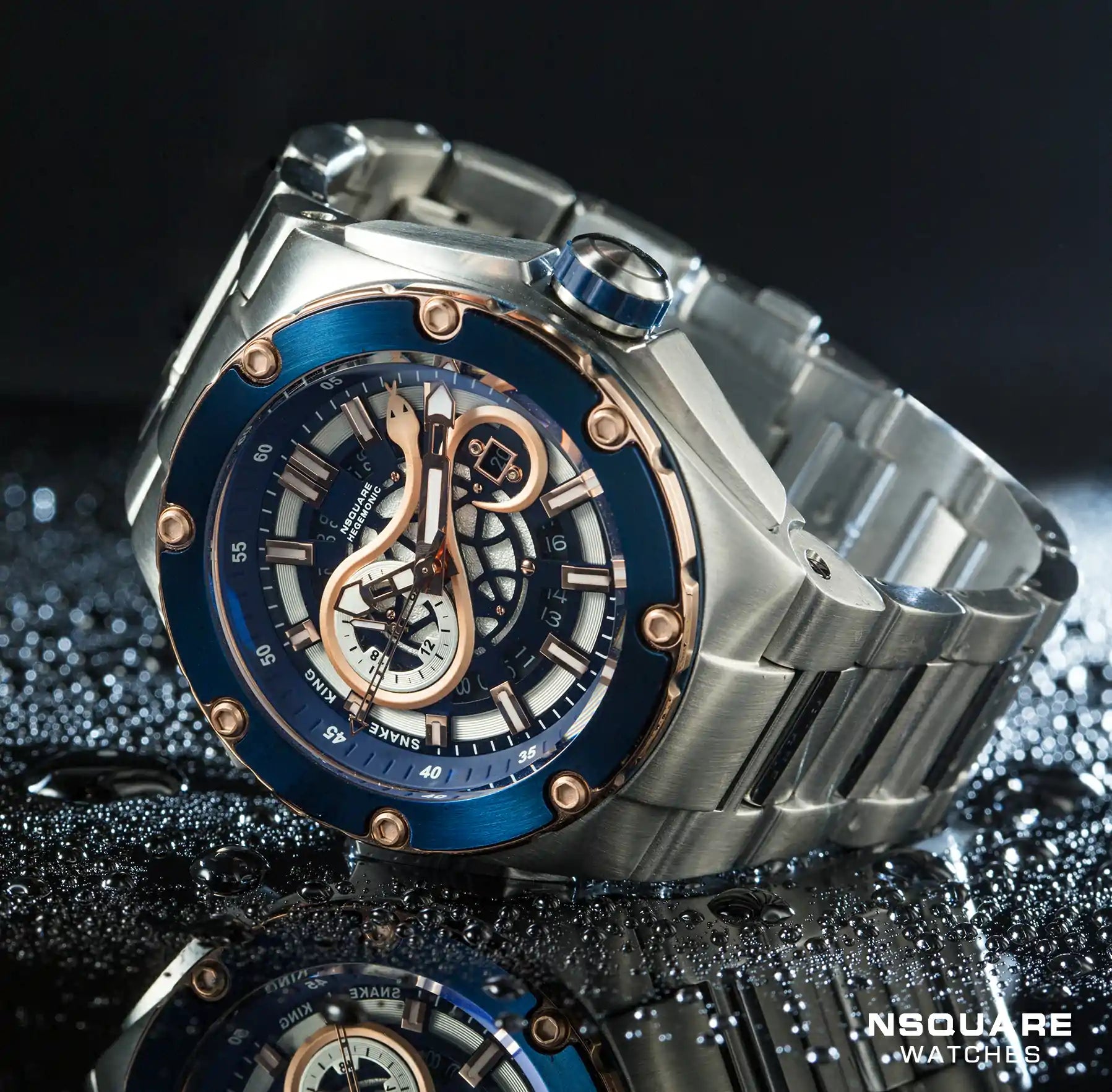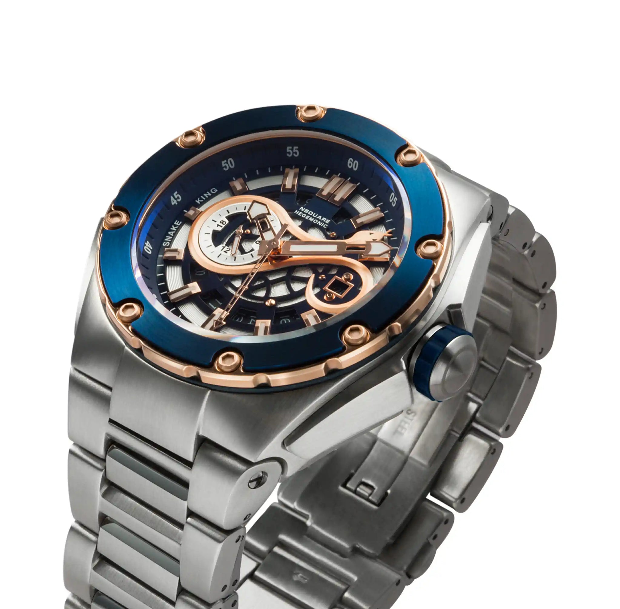 NSQUARE SnakeKing Automatic Watch-46mm N10.4 RG/Steel/SS Bracelet|蛇皇系列 自動錶-46毫米 N10.4 海岸藍色/不銹鋼錶鏈帶