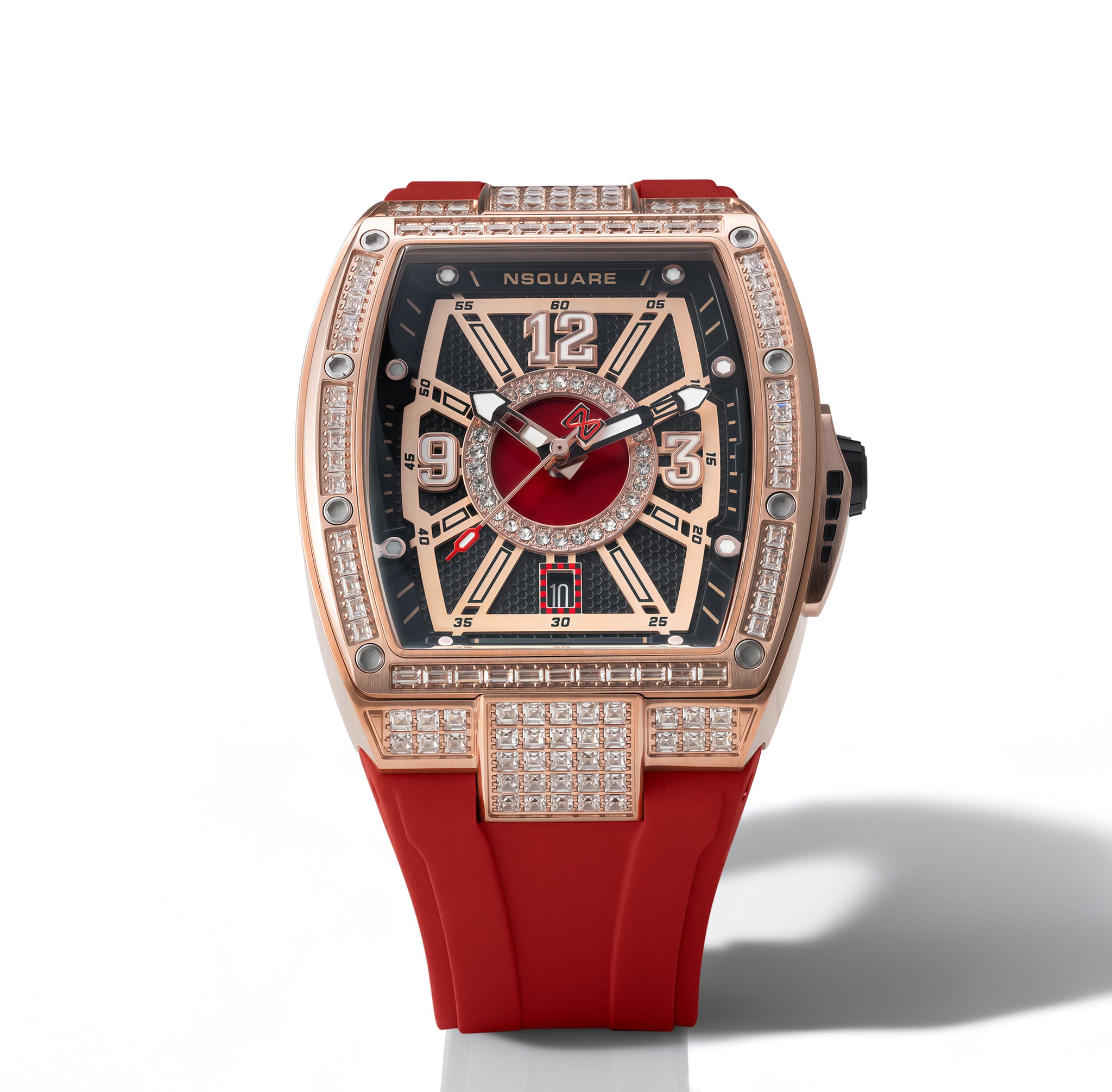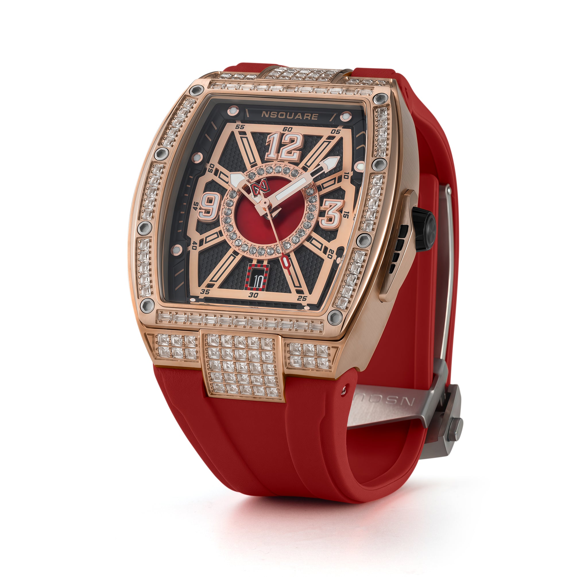 DialBlack and red MOP. The clear, large numeral indices—12, 3, 9—act like critical markers on a tachometer, ensuring instant readability at a glance while in motion. |