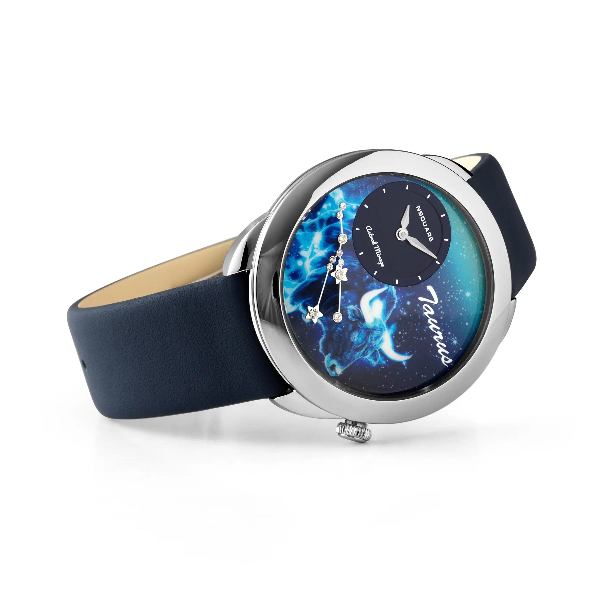 - 錶盤上優雅展示金牛座星座圖案,由白色星星連接,每顆星點鑲嵌閃亮寶石,視覺效果驚艷。