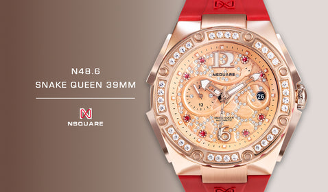 NSquare 蛇后39毫米系列,將優雅與力量完美融合,讓妳在舉手投足間綻放獨特光芒。